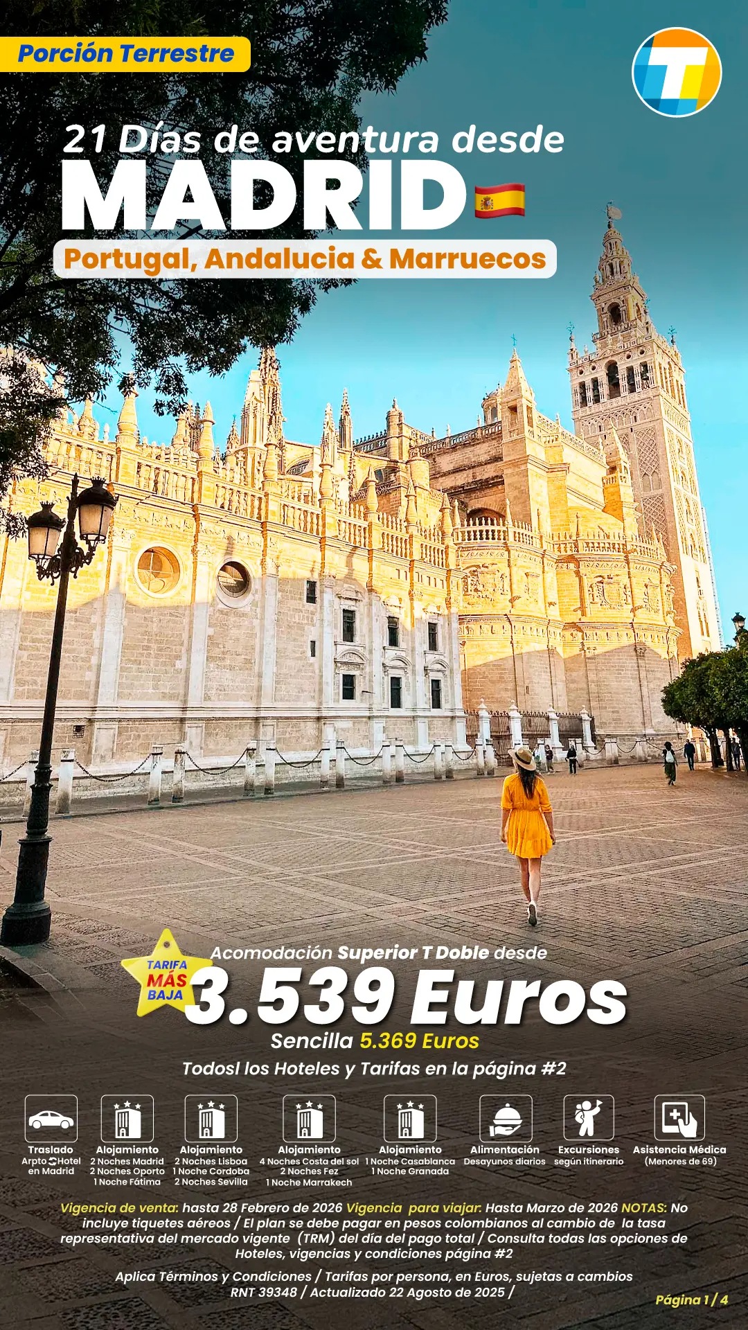 Tarifas por persona en Euros, sujetas a cambios sin previo aviso, y a disponibilidad de cupos.