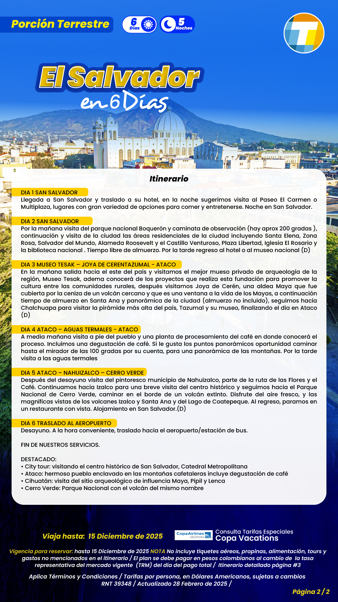 • Asistencia Médica por 06 días (aplica para pasajeros menores de 70 años)