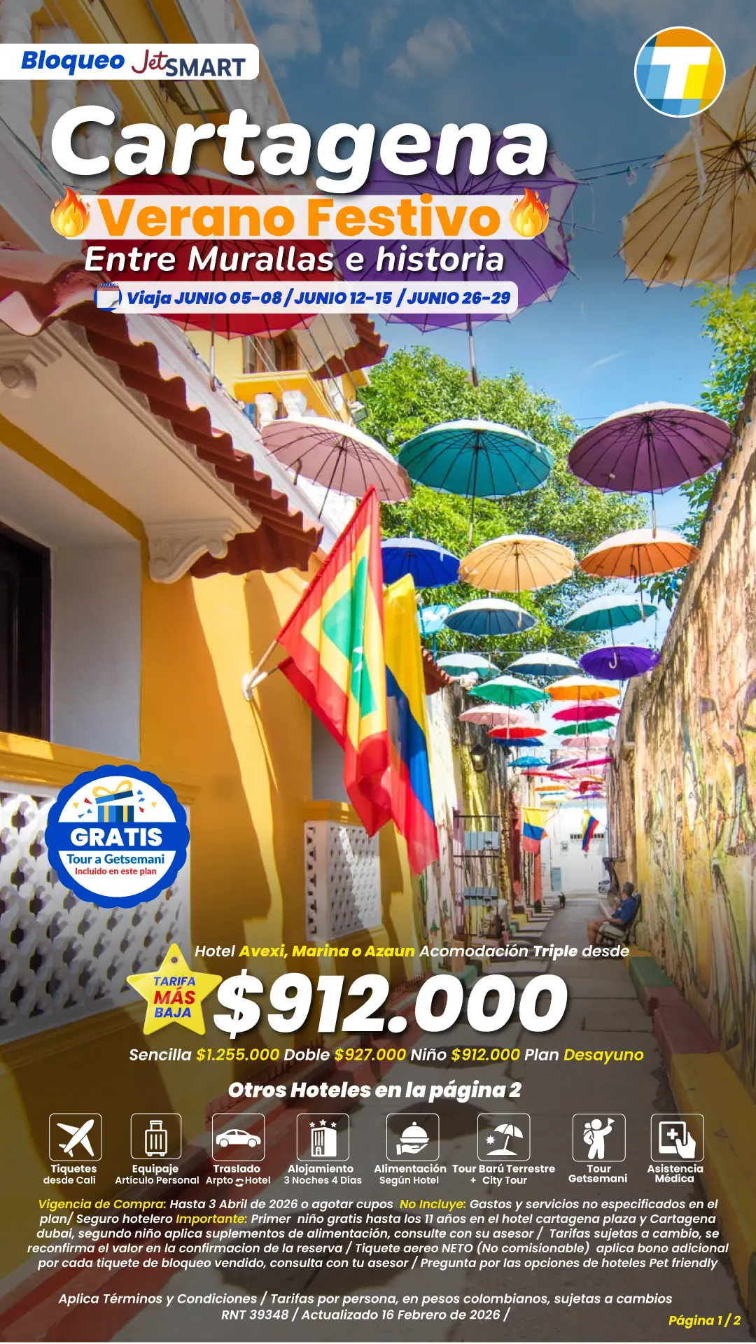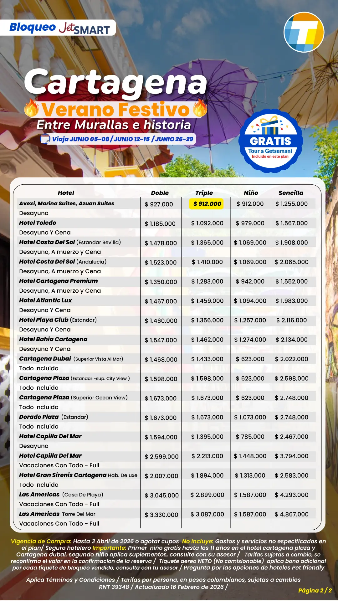 Tarifas por persona en pesos colombianos, sujetas a cambios sin previo aviso, sujetas a disponibilidad de cupos.