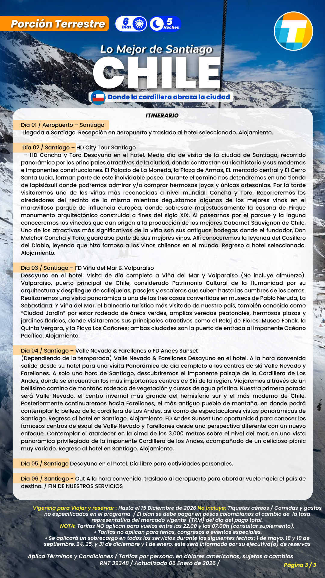 • 05 noches de alojamiento en Santiago (desayuno incluido)