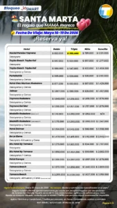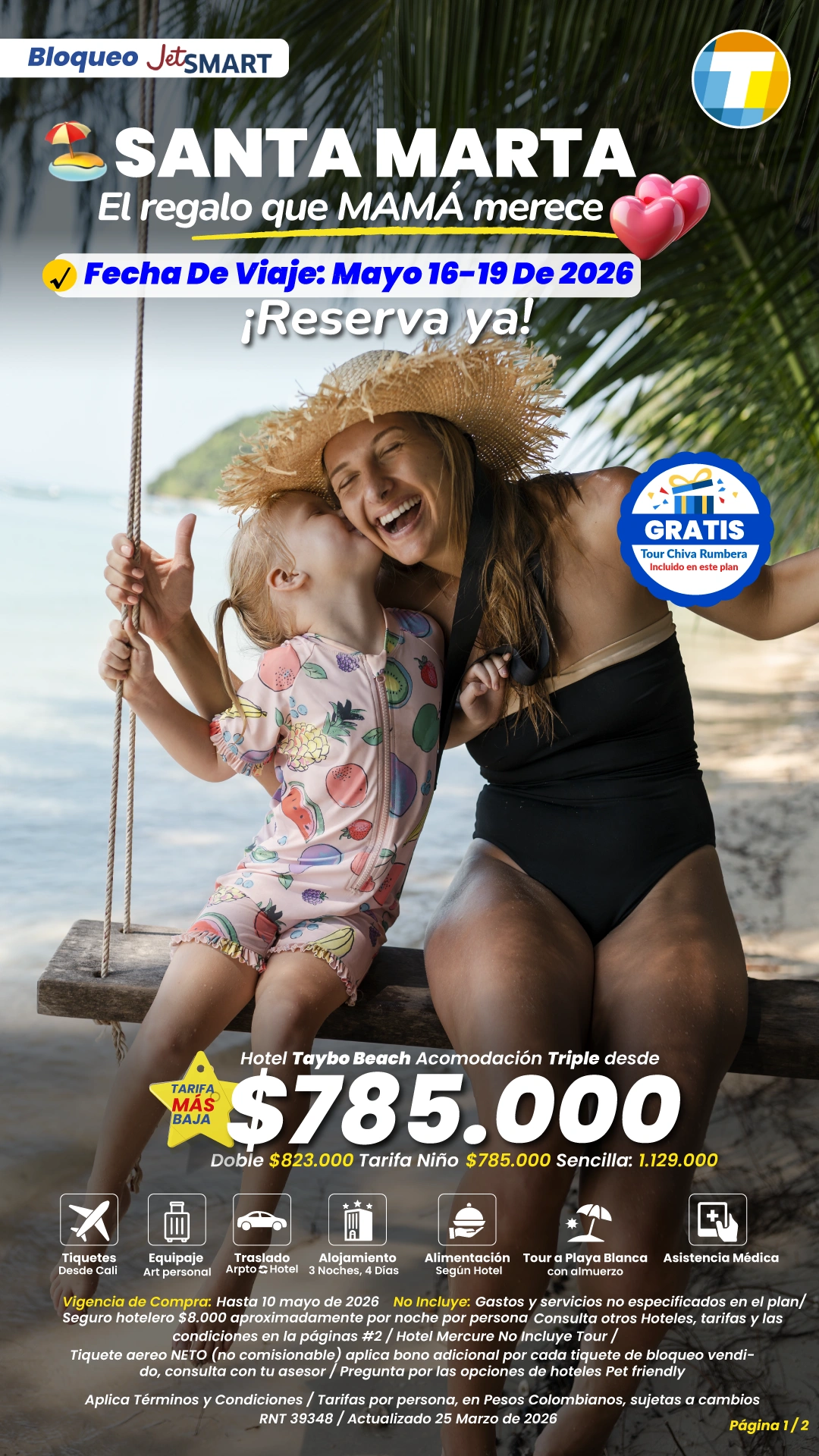 Tarifas por persona en pesos colombianos, sujetas a cambios sin previo aviso, sujetas a disponibilidad de cupos.