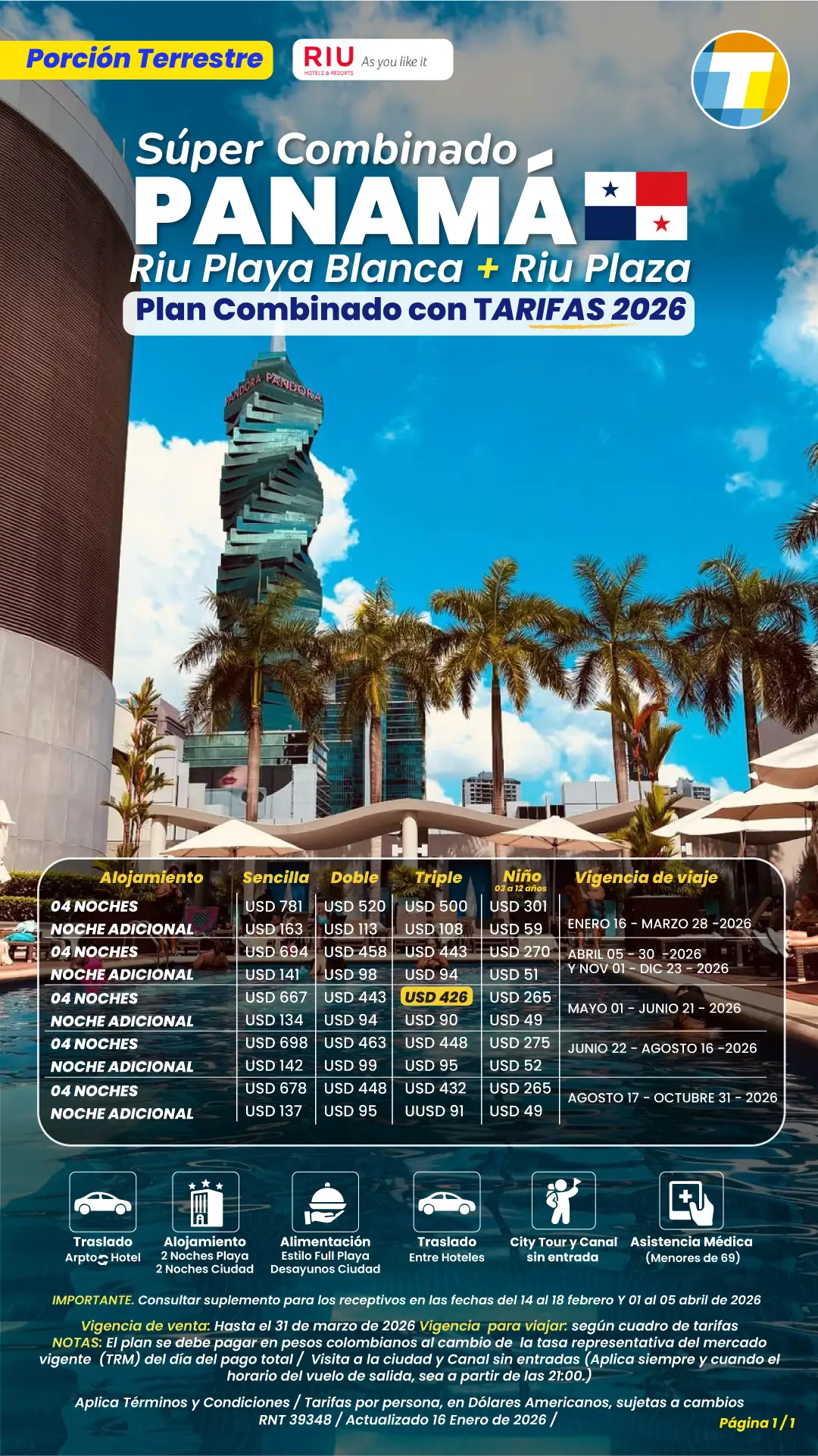 Tarifas por persona en dólares americanos, sujetas a variación del dólar, a cambios sin previo aviso, y a disponibilidad de cupos.