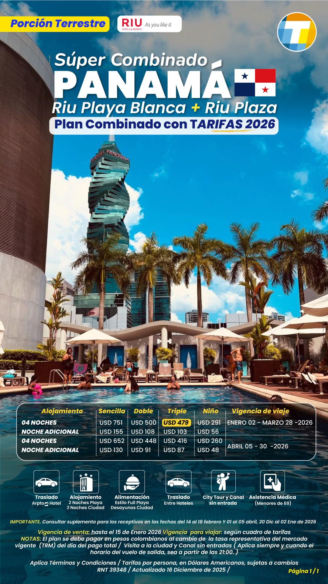 Tarifas por persona en dólares americanos, sujetas a variación del dólar, a cambios sin previo aviso, y a disponibilidad de cupos.