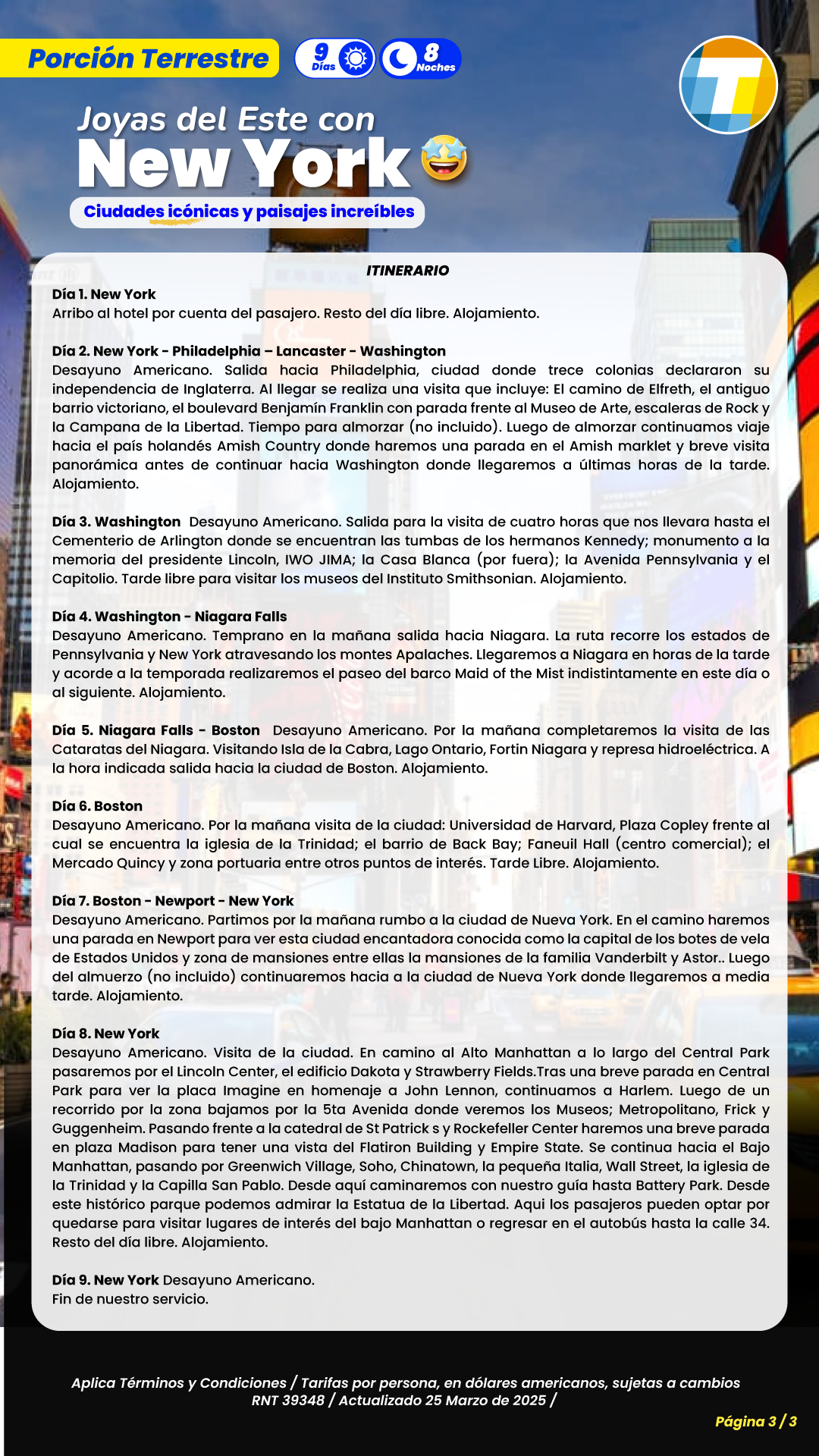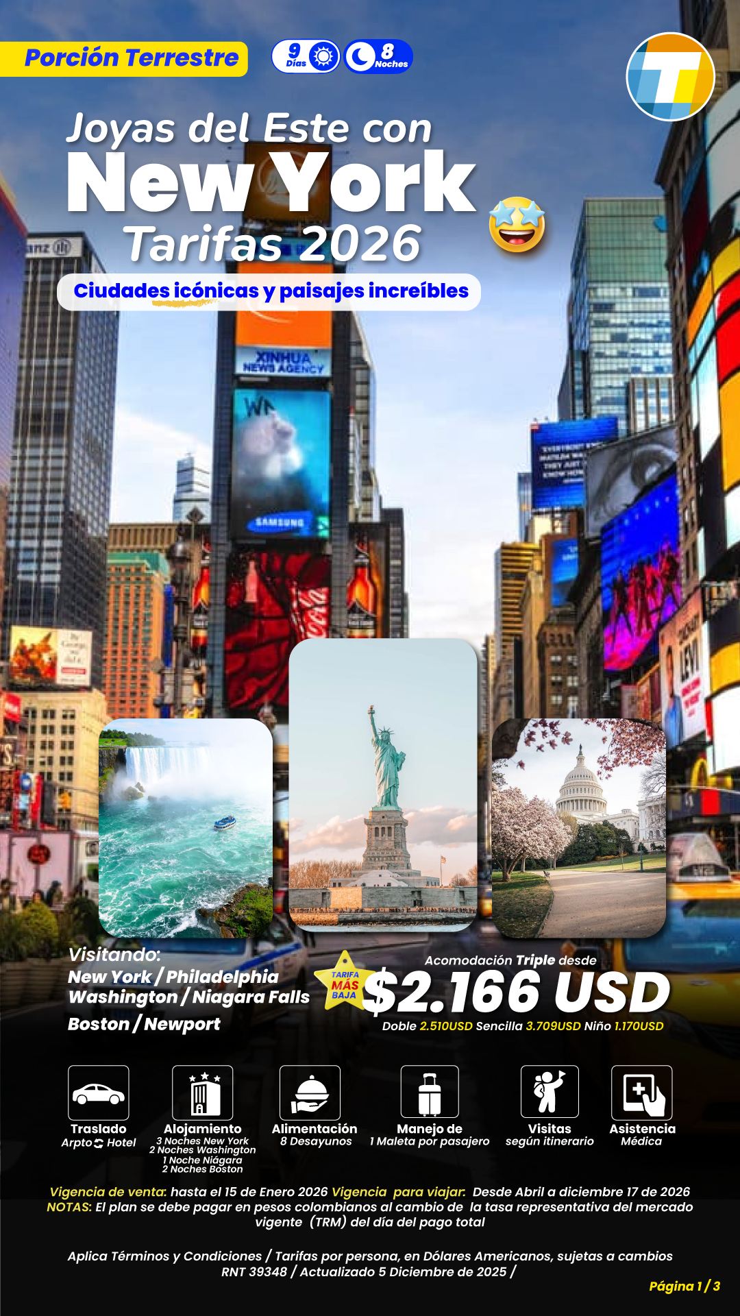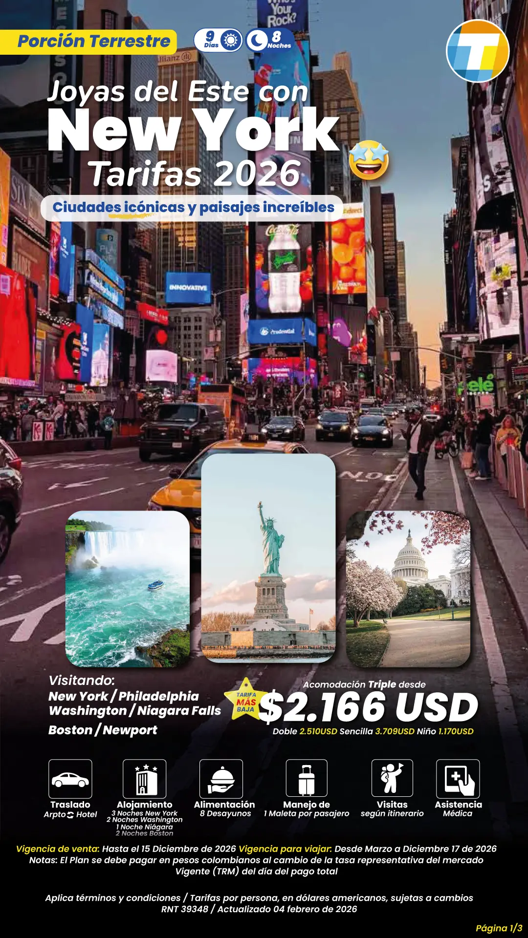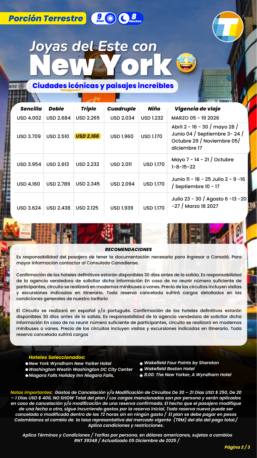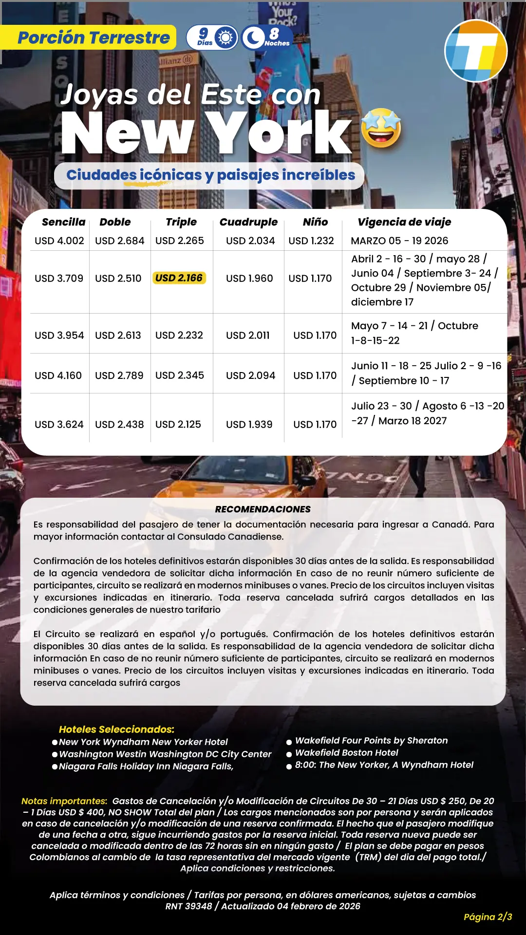 Las tarifas son por persona en dólares americanos, sujetas a cambios. Tener en cuenta la edad de niños