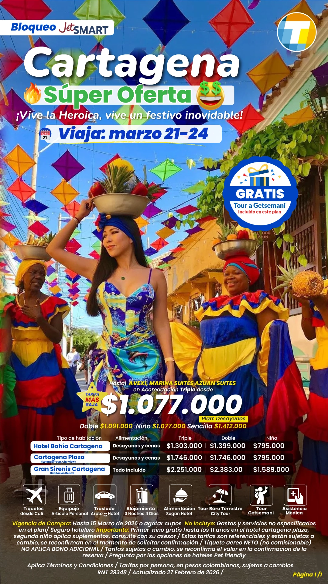 Tarifas por persona en pesos colombianos, sujetas a cambios sin previo aviso, sujetas a disponibilidad de cupos.