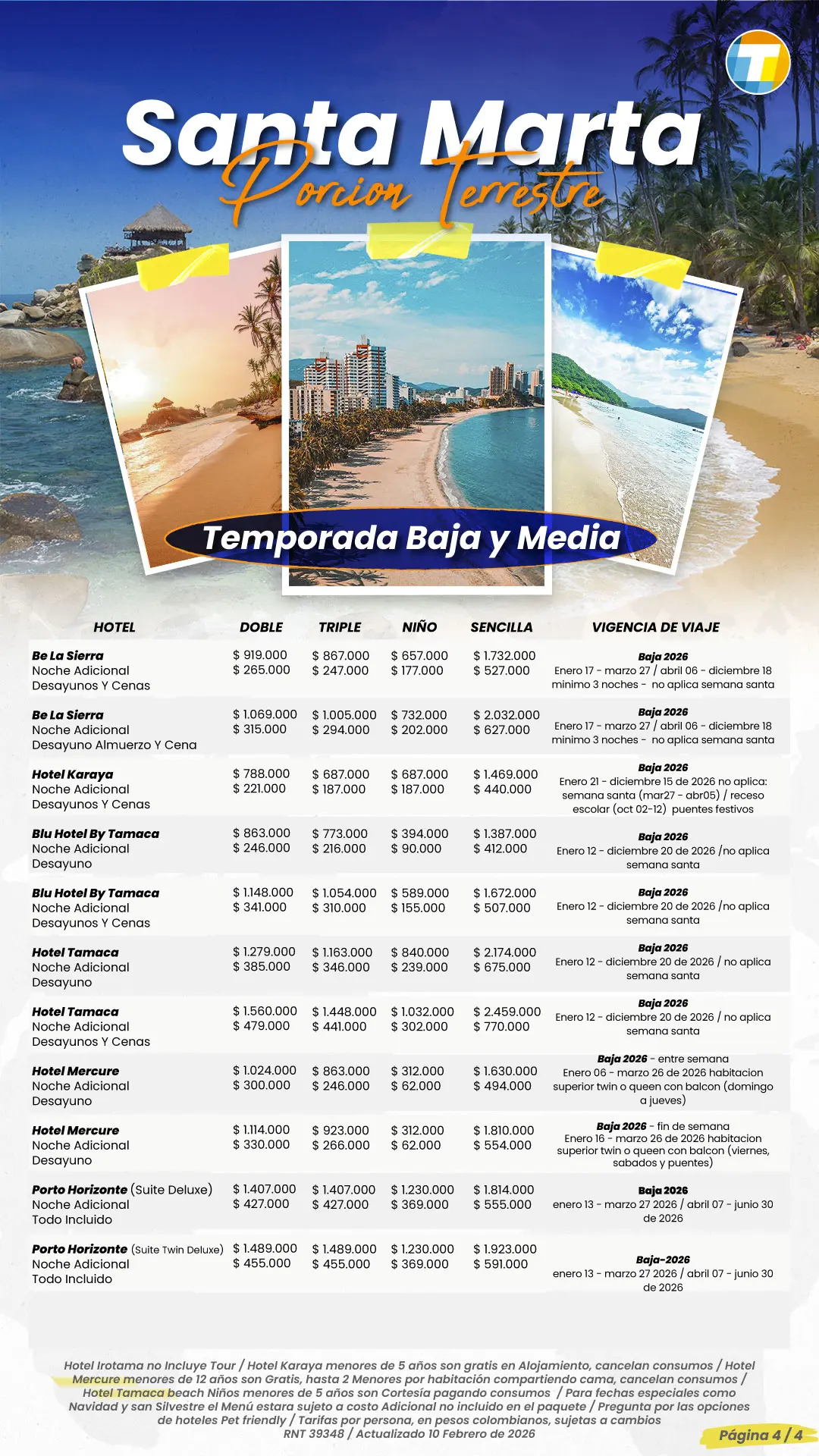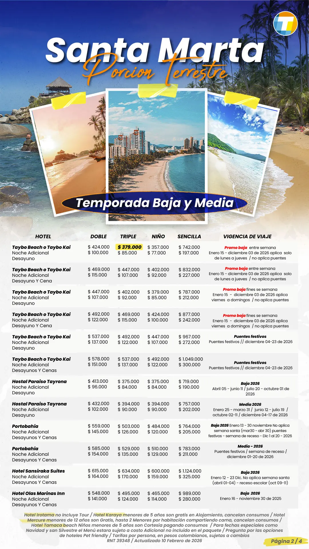 Santa Marta Porción Terrestre Temporada Baja y Media