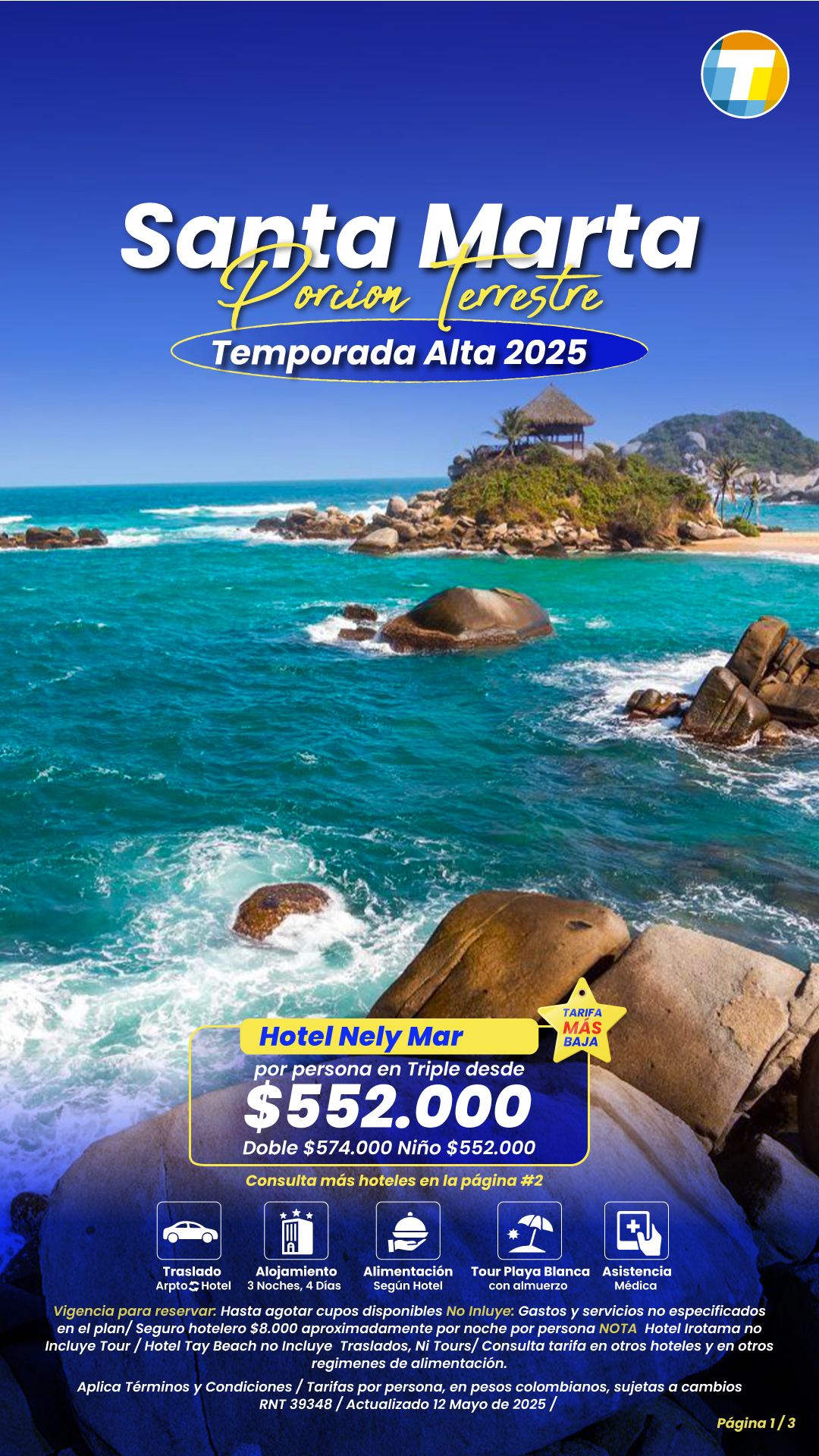 Tarifas por persona en pesos colombianos, sujetas a cambios sin previo aviso, sujetas a disponibilidad de cupos. / Asistencia médica sólo para ciudadanos colombianos.
