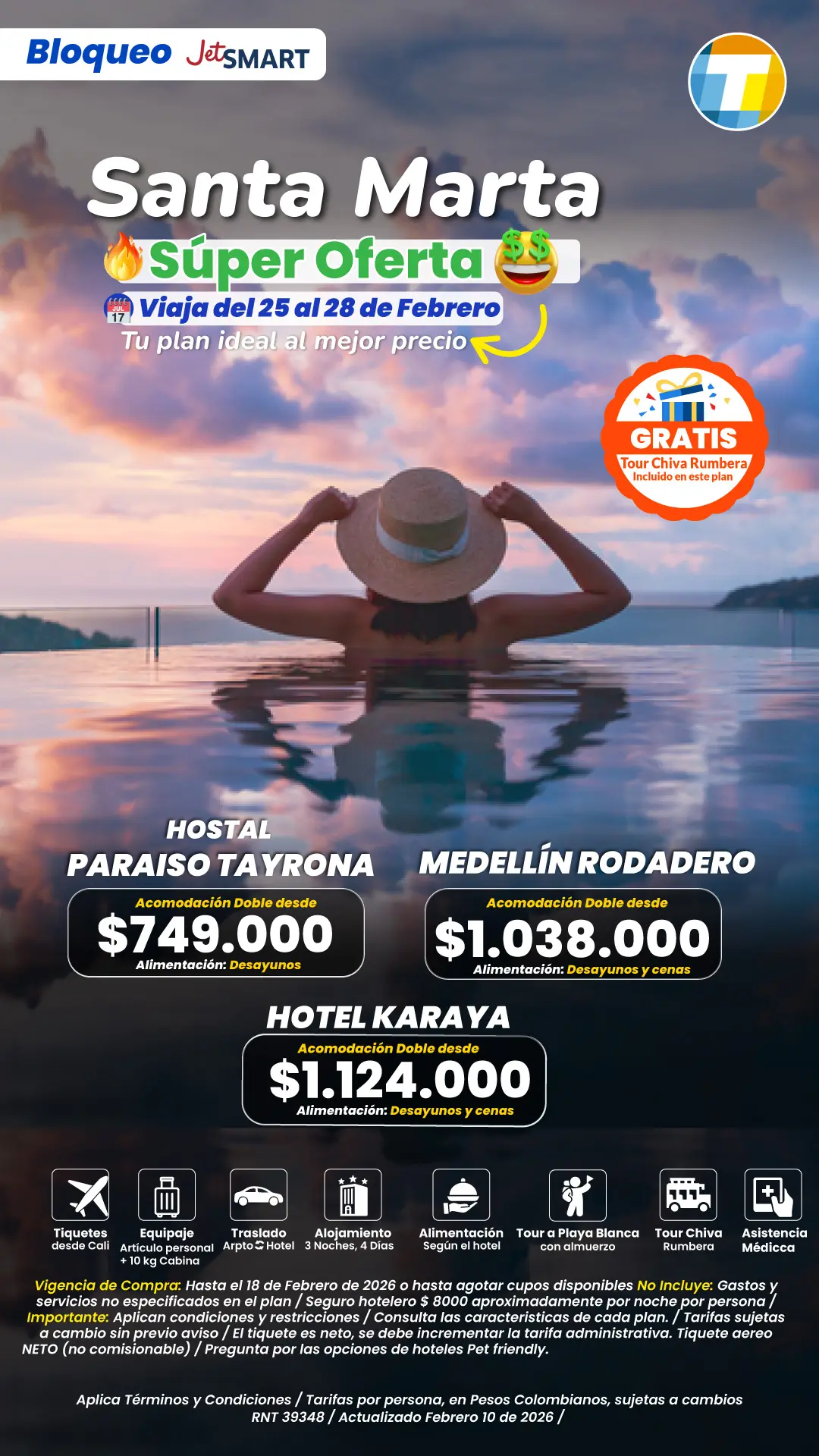 Tarifas por persona en pesos colombianos, sujetas a cambios sin previo aviso, sujetas a disponibilidad de cupos.