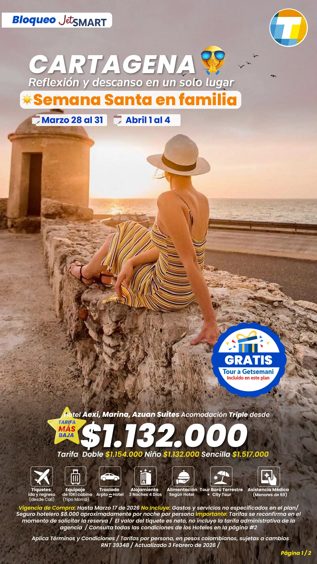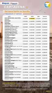 Tarifas por persona en pesos colombianos, sujetas a cambios sin previo aviso, sujetas a disponibilidad de cupos.