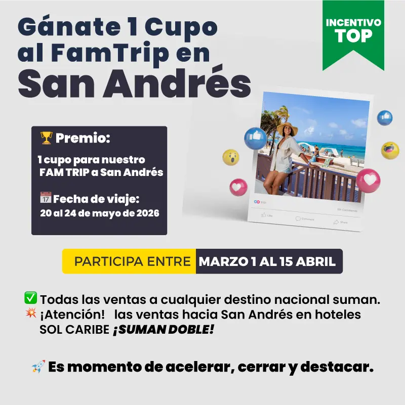 1 cupo para nuestro FAM TRIP a San Andrés